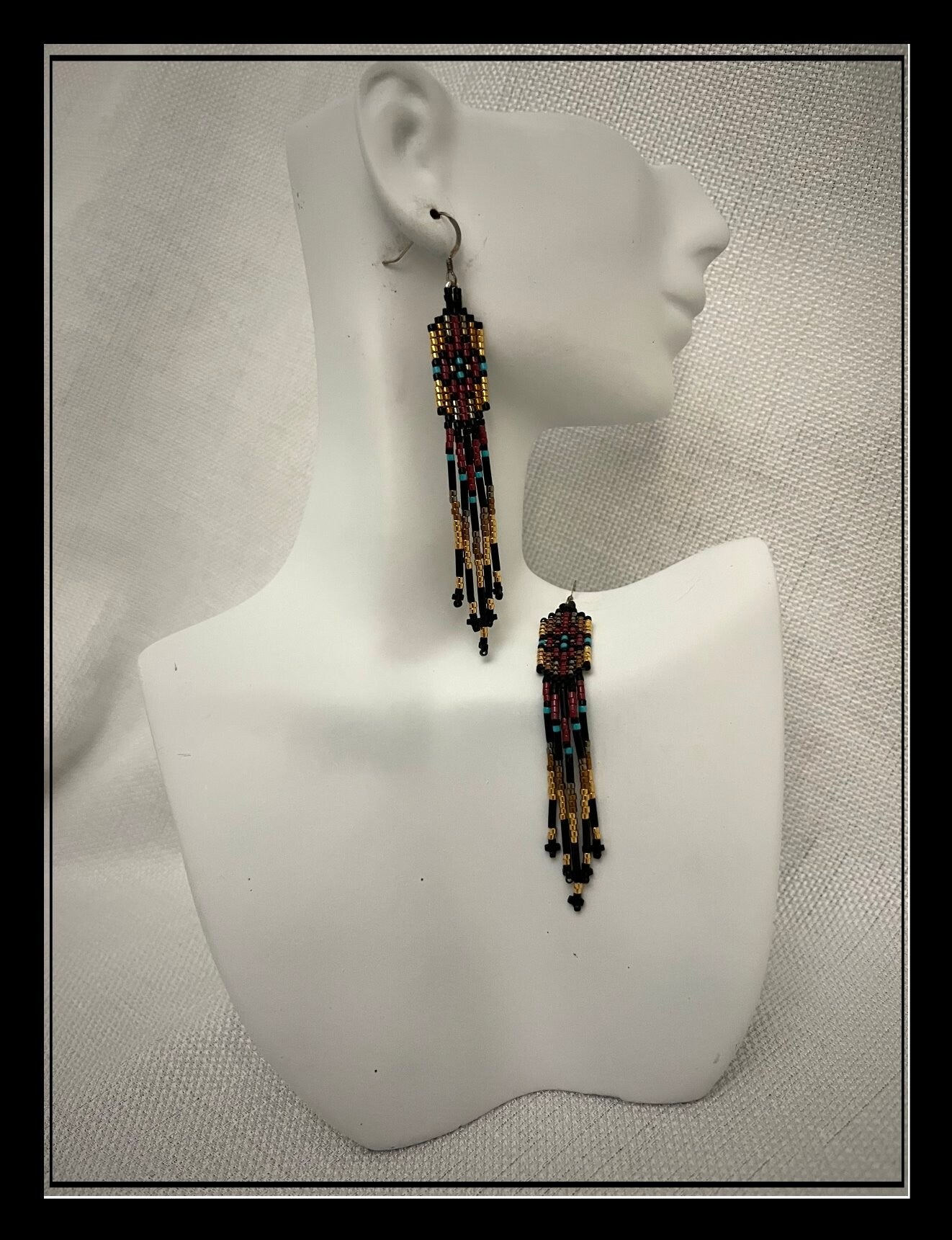 Made with 11/0 Delica beads using my signature square stitch for added strength and durability. Earrings are approximately 1/2" wide by 3" long (not including hooks). All earring hooks are sterling silver.
